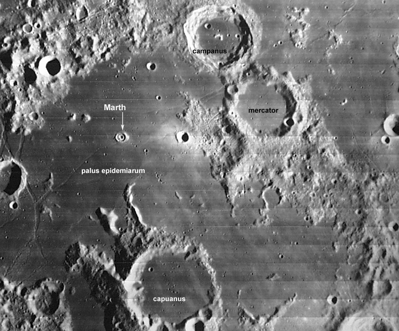 | 3 | Marth | palus Epidemiarum | 31,1°S - 29,3°W | 7 km | 2 days after first quarter phase | Refractor 100 mm |