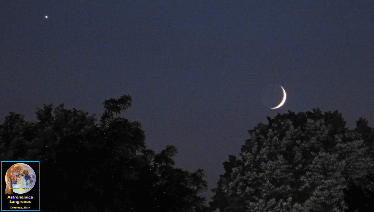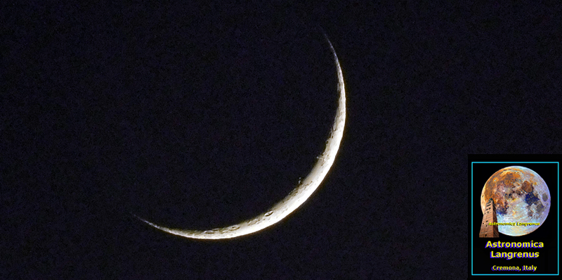 19/05/2018 - Falce lunare in fase di 4,3 giorni - Nikon Coolpix B500, 1/160", F 6.5, ISO 450, DZ 2,8x, Foc. Acquisizione 2560mm |