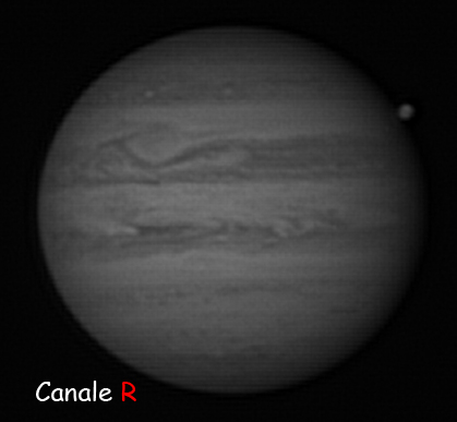 | (Sopra): Scomposizione nei canali RGB e successiva singola rielaborazione con Registax.6. Le 3 immagini RGB elaborate sono poi state sommate con Registax.5 | |||