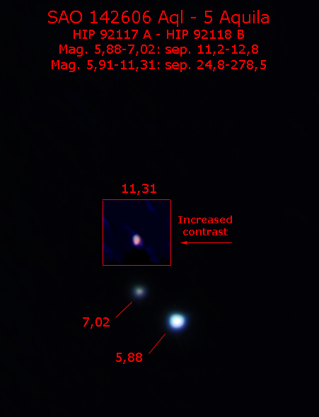 SAO 142606 Aql - 5 Aquila - HIP 92117 A - 92118 B  Data VIDEO:  19 AGOSTO 2012 RA:  18 46.2 -  Dec:  - 00 57